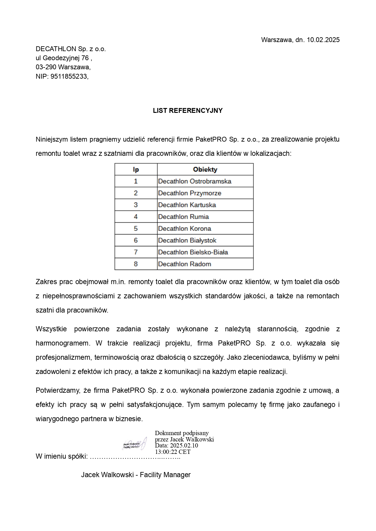 Otrzymujesz kompletną dokumentację, której wymagają zarządcy nieruchomości, właściciele i audytorzy. Masz czarno na białym potwierdzenie jakości, legalności i zgodności wykonanych prac ze sztuką budowlaną. To jest Twój ostateczny dowód na dobrze zrealizowaną inwestycję.